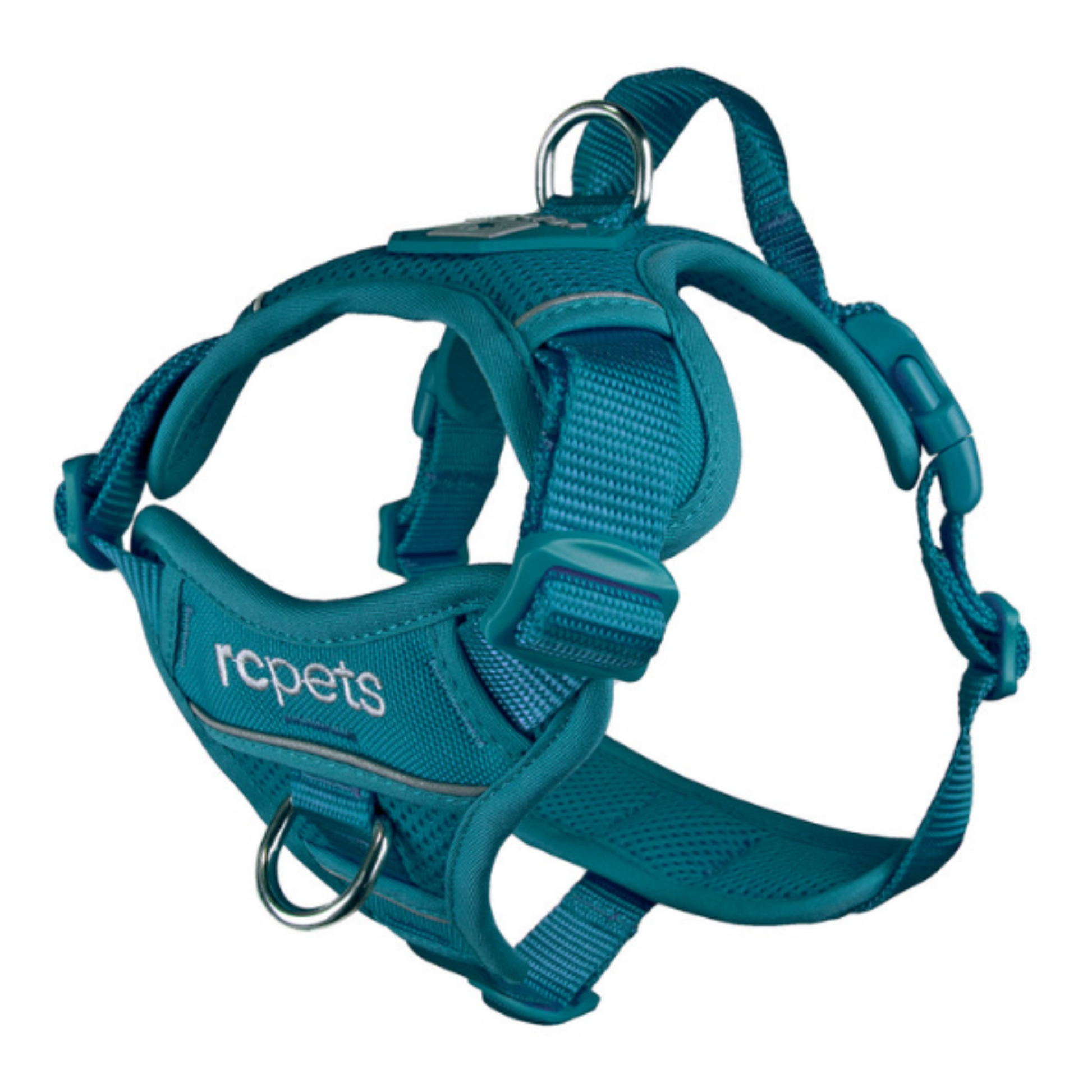 This harness features five points of adjustability for a perfect fit and reinforced stress points for added durability. It offers three leash attachment options for varying levels of control, while reflective piping enhances nighttime visibility. Breathable mesh panels keep your dog comfortable, and a back handle provides extra support over rough terrain.